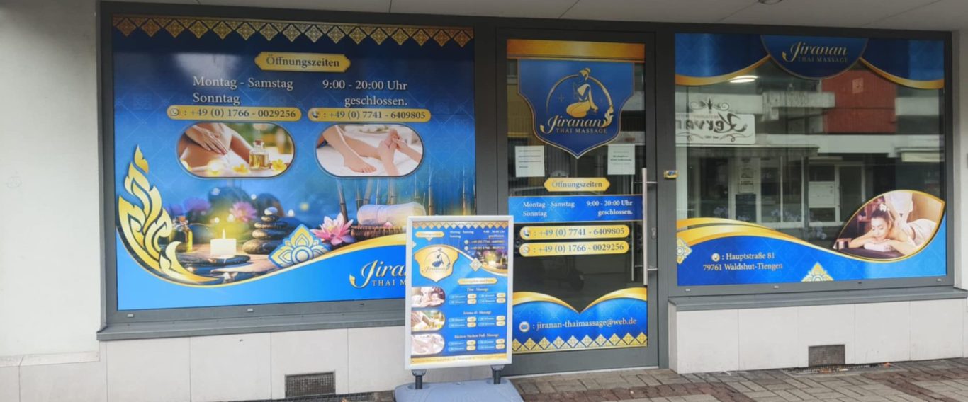 Mit ihren farbenfrohen Schaufenstern ist die JIRANAN THAI MASSAGE in der Tiengener Hauptstrasse nicht zu übersehen.